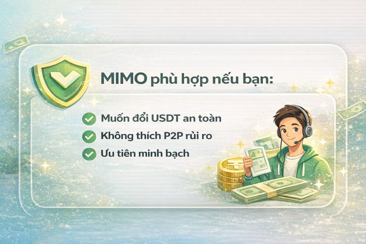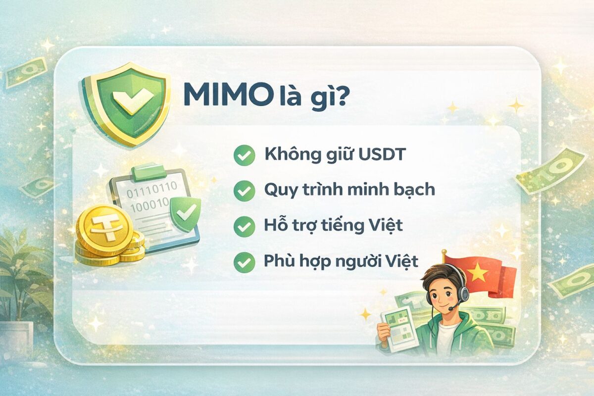 Đổi USDT sang VND là nhu cầu thực tế của nhiều người tại Việt Nam. Trong bối cảnh các phương thức truyền thống tiềm ẩn nhiều rủi ro, MIMO được xem là giải pháp cân bằng giữa an toàn và tiện lợi, đặc biệt với những người ưu tiên quy trình rõ ràng và hạn chế rủi ro.
